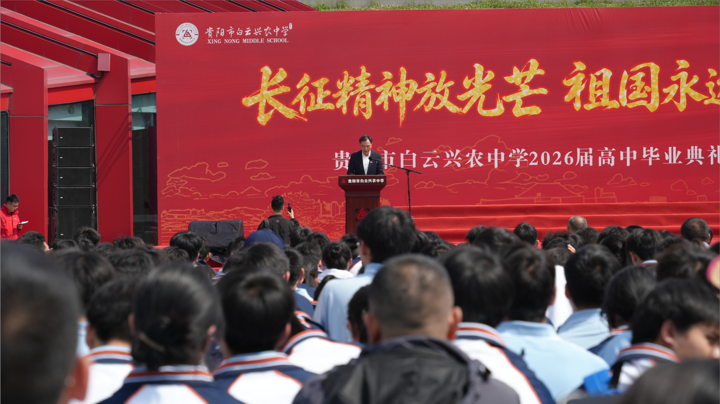 毕业生代表动情说道:“在红飘带里回望长征、立下誓言,让我真正明白青春不仅是毕业与成长,更是责任与担当。我们会带着这份力量全力以赴备战高考,用行动回报家国与师长。”