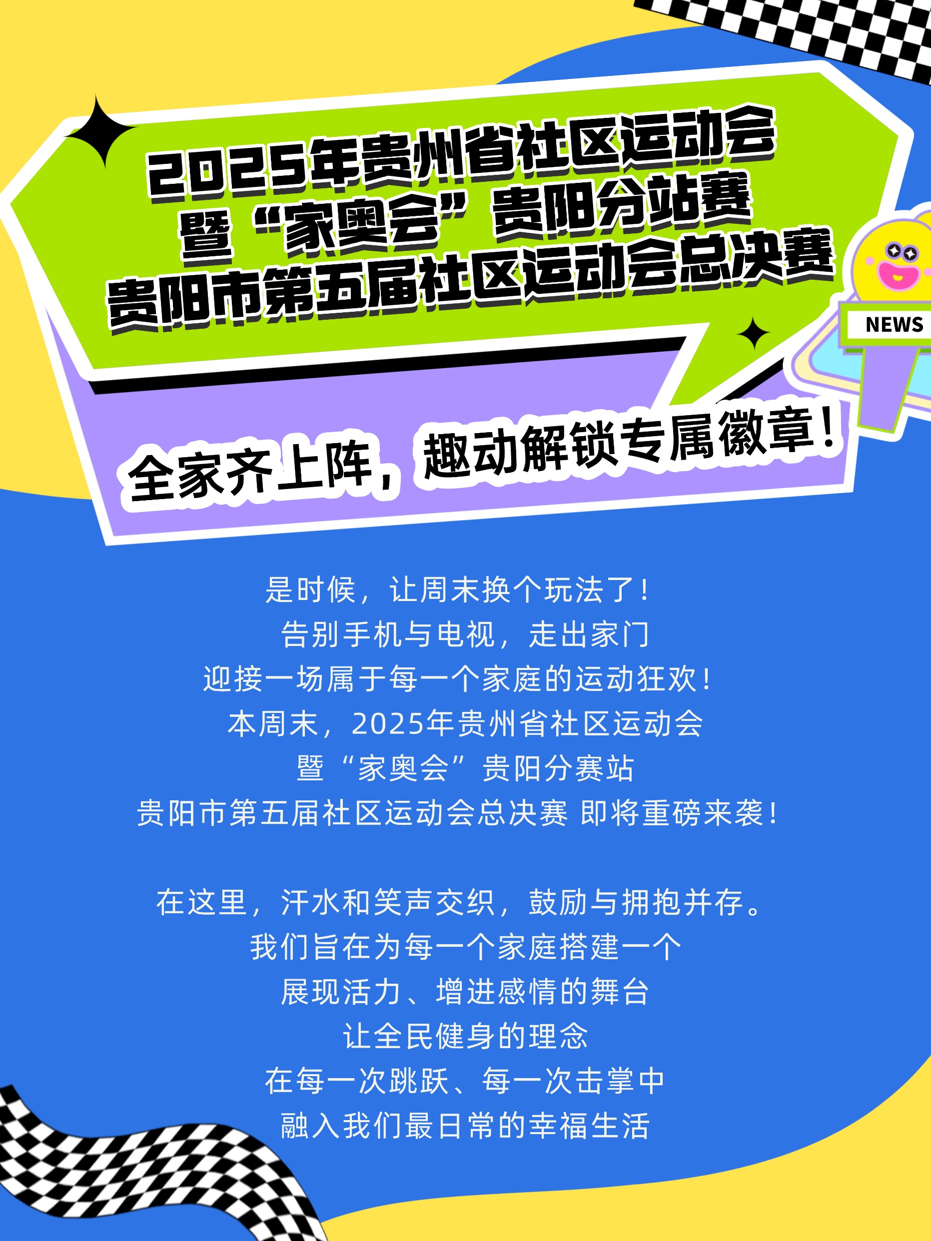 全家齐上阵,等你来挑战!2025年贵州省社区运动会暨“家奥会”贵阳分站赛贵阳市第五届社区运动会总决赛重磅来袭!