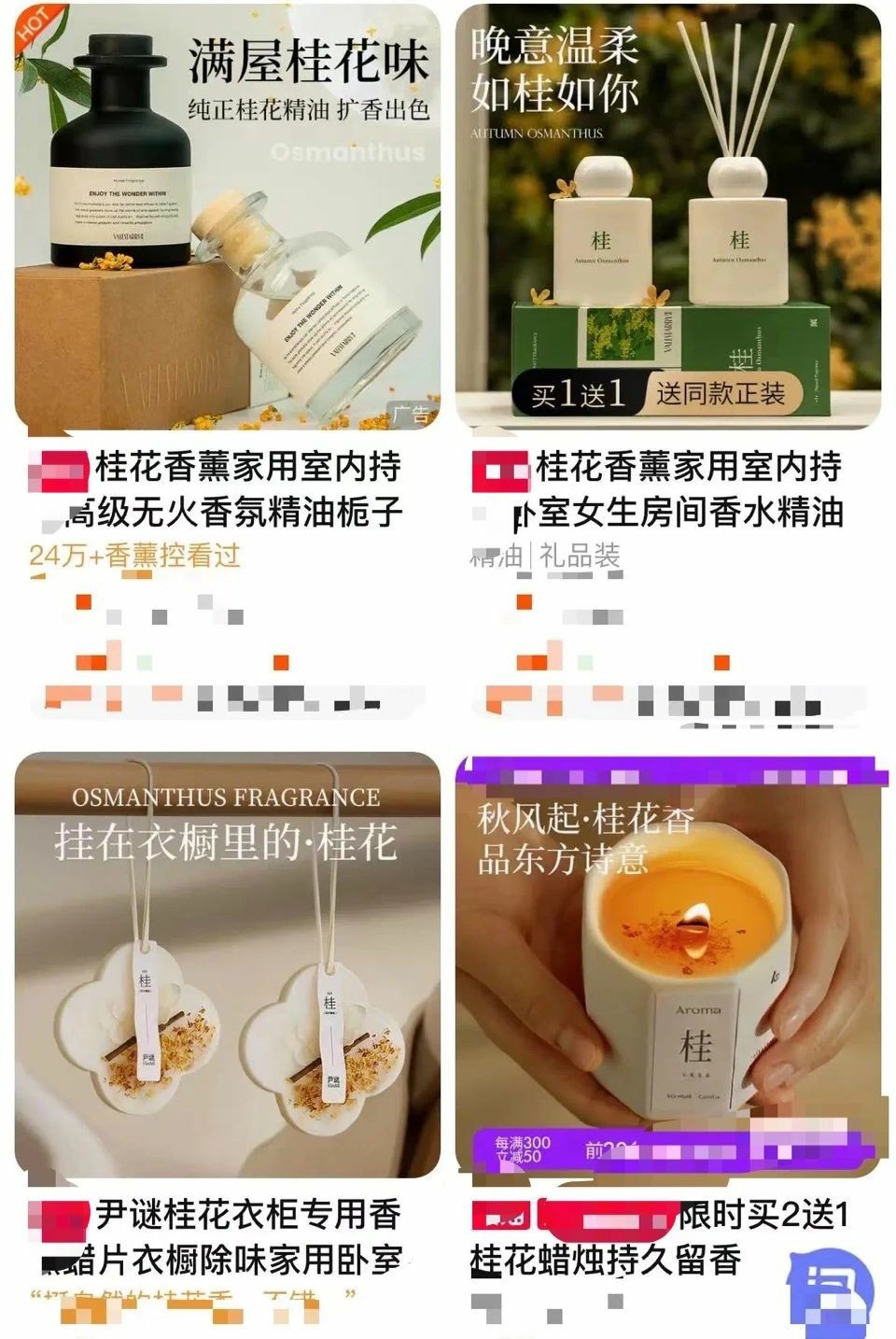 桂花味香薰、香水、洗衣液等