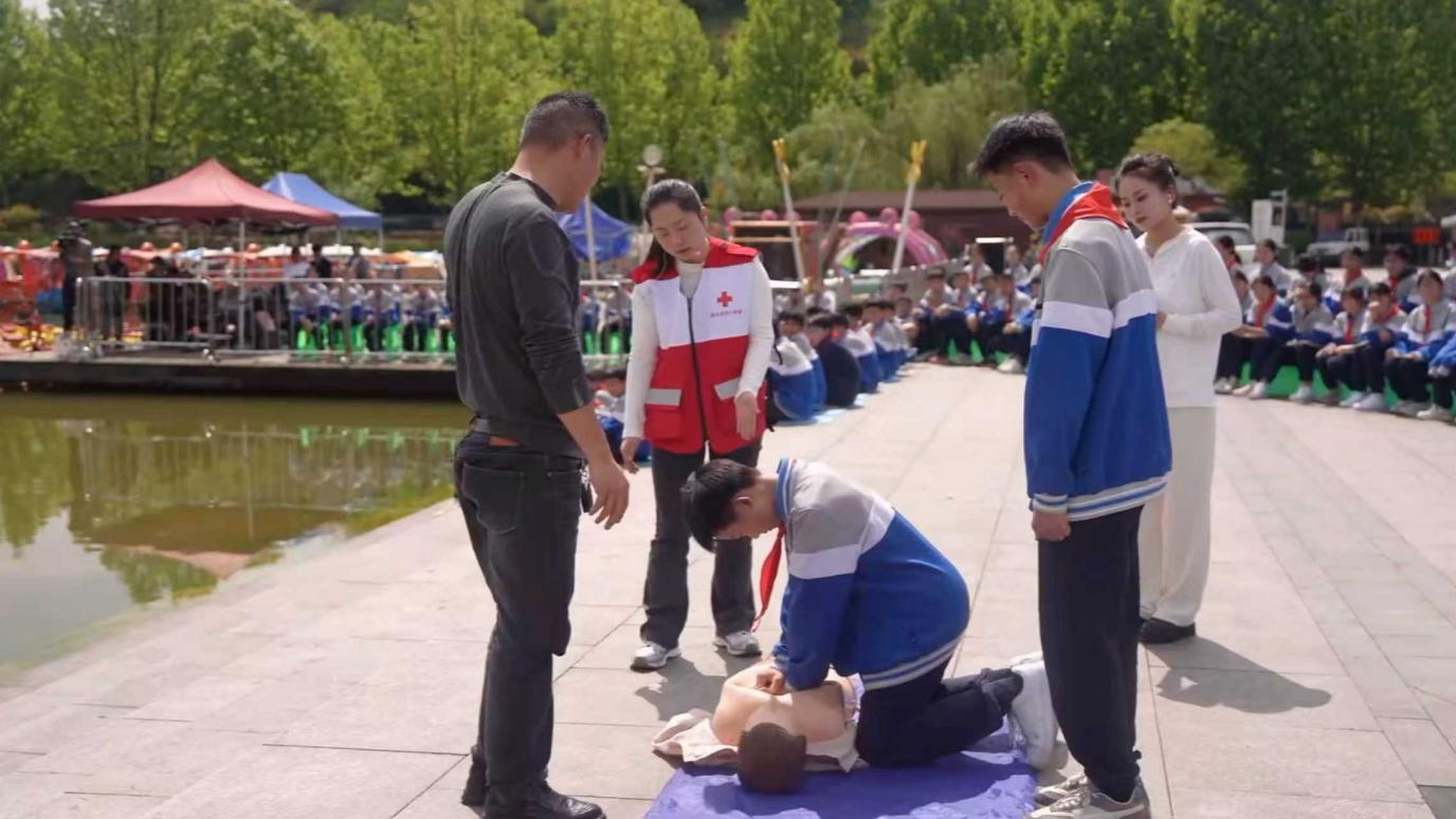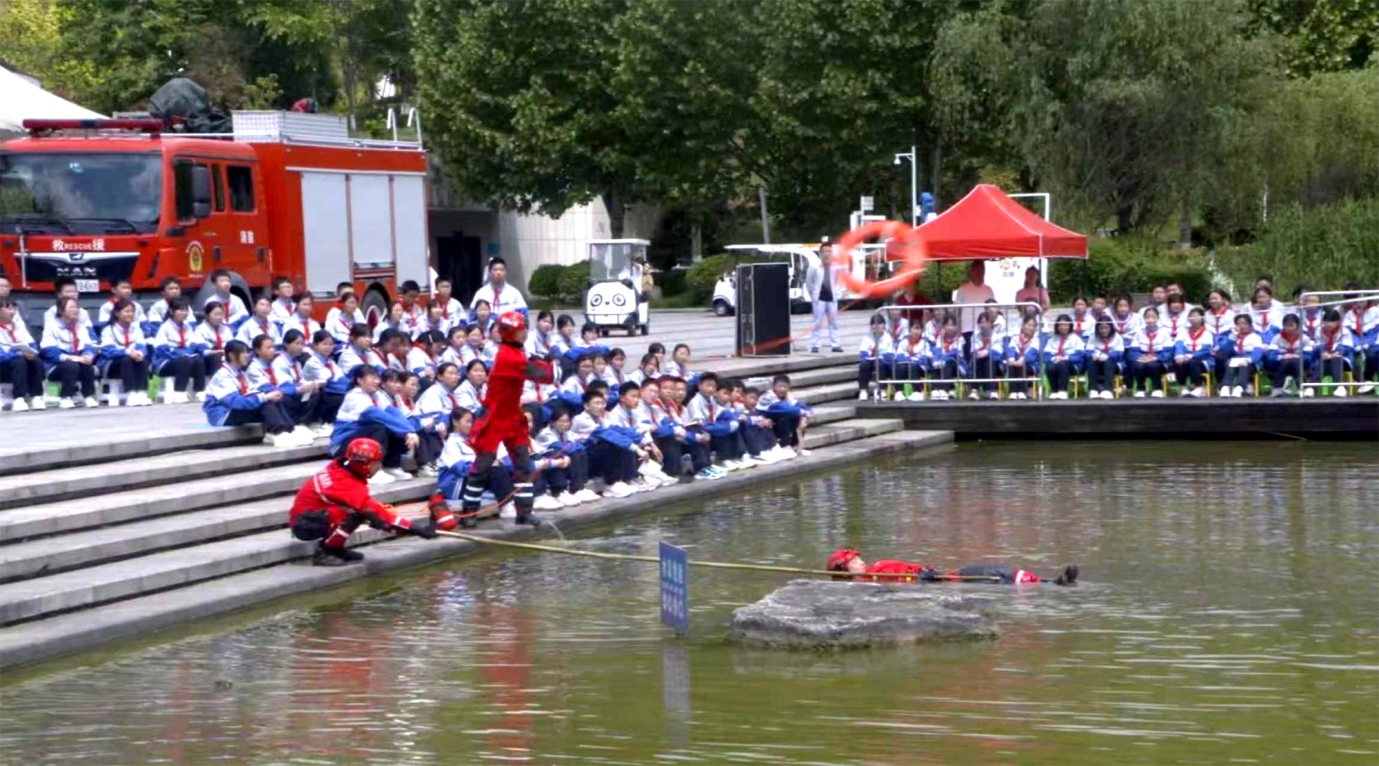 直播现场依托白鹭湖真实水域场景,遵义市消防救援支队消防员化身安全导师,采用实景模拟、实操演示相结合的方式,还原野外水域失足、意外落水等常见溺水场景,细致讲解水中自救方法、科学应急救援技巧,并现场示范胸外按压、人工呼吸等应急急救流程,用生动直观的形式,把专业的防溺水知识和自救技能传递给广大学生。