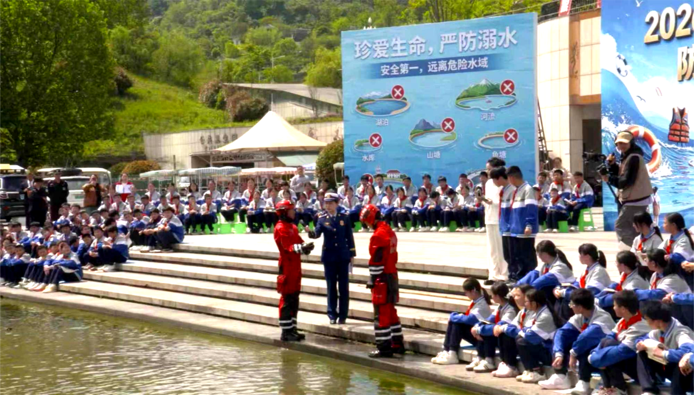 4月24日,2026年遵义市中小学生防溺水户外直播课在遵义市新蒲新区白鹭湖湖畔正式开讲,全市中小学生同步参与收看。本次活动由遵义市教育体育局、遵义市消防救援支队主办,遵义市新蒲新区教育体育局、遵义市第四十二中学承办,贵州广播电视台教育事业部全程策划执行,以实景化教学筑牢夏季青少年防溺水安全屏障。