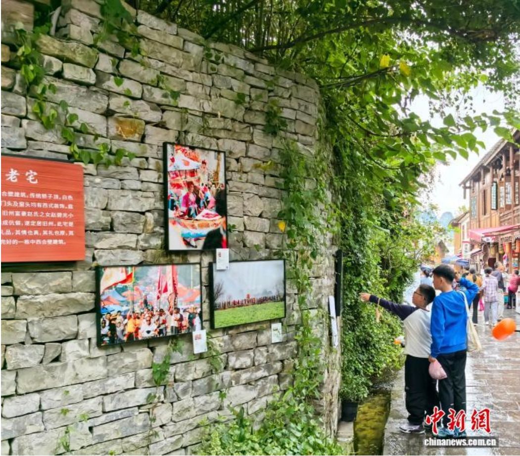 距今已有600年历史的旧州古镇,是屯堡文化的重要发源地。国庆中秋期间,安顺地戏露天展演、“跟着知州游旧州”及2025多彩贵州·第十八届中国原生态国际摄影大展,成为古镇三大打卡项目。特别是上千幅有关屯堡文化的摄影作品,悬挂于古镇的青石巷壁、老宅外墙、庭院廊下,将600年的文化记忆融入当下街景,吸引游客纷至沓来。