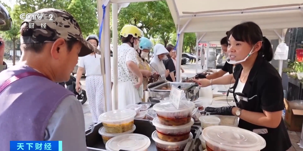 在江苏扬州,当地一家星级酒店的外卖摊位下午五点准时出摊。合理的价格,地道的菜品,让前来购买的市民赞不绝口。