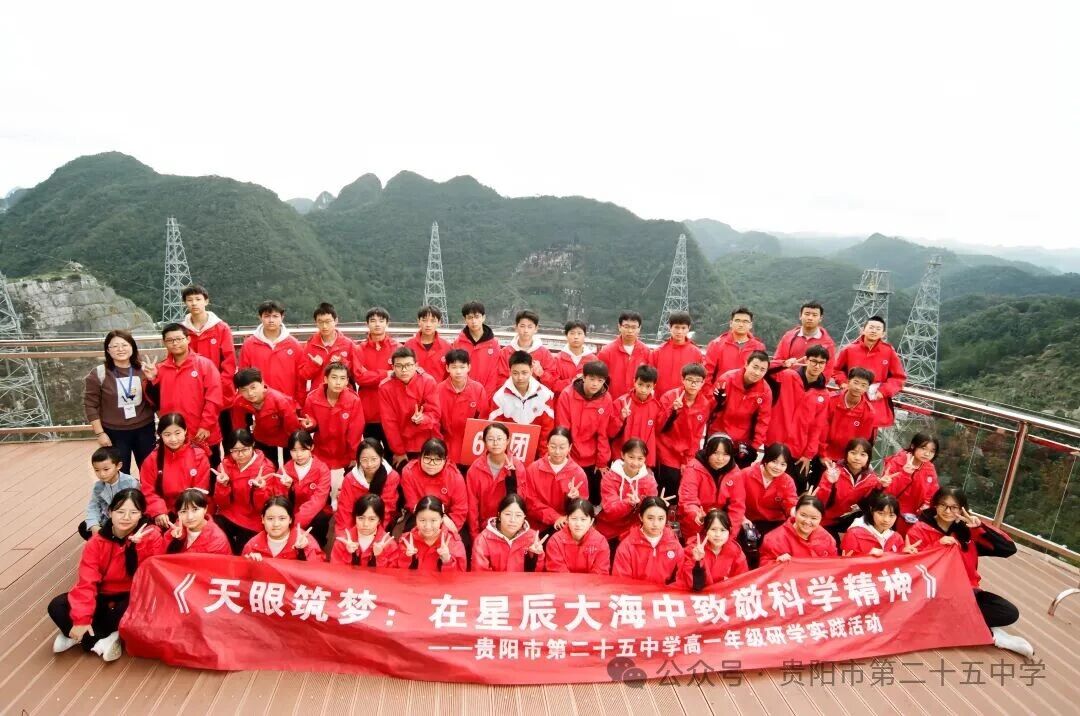近日,贵阳市第二十五中学高一年级全体同学分批次前往贵州平塘,开展了以“中国天眼(FAST)”为主题的研学实践活动。此次活动旨在引导学生走出课堂、走进国家重大科技基础设施现场,在亲身感受与实地探索中,激发科学兴趣,培育家国情怀。