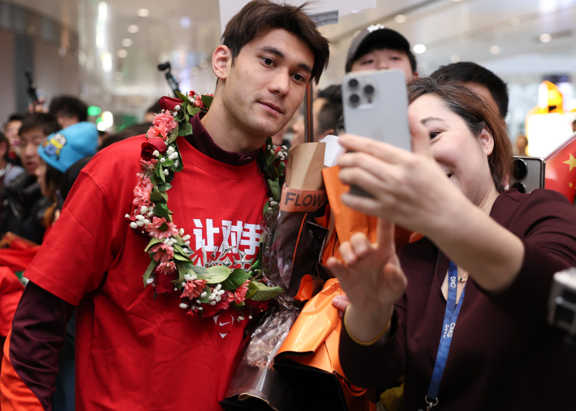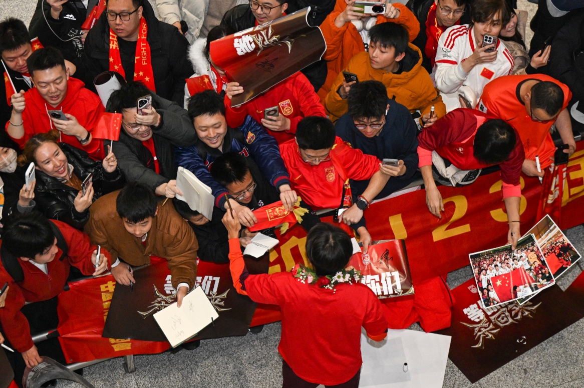 国家体育总局办公厅相关负责人、中国足球协会相关负责人到机场迎接队伍归来,并勉励队员们以本次赛事为新的起点,牢记为国争光使命,继续发扬顽强拼搏、自强不息的精神,进一步增强使命感、责任感、荣誉感,戒骄戒躁、再接再厉,打造能征善战、作风优良的队伍,以新的优异成绩,为推进足球振兴发展作出新的更大贡献。(图片来源:新华社)