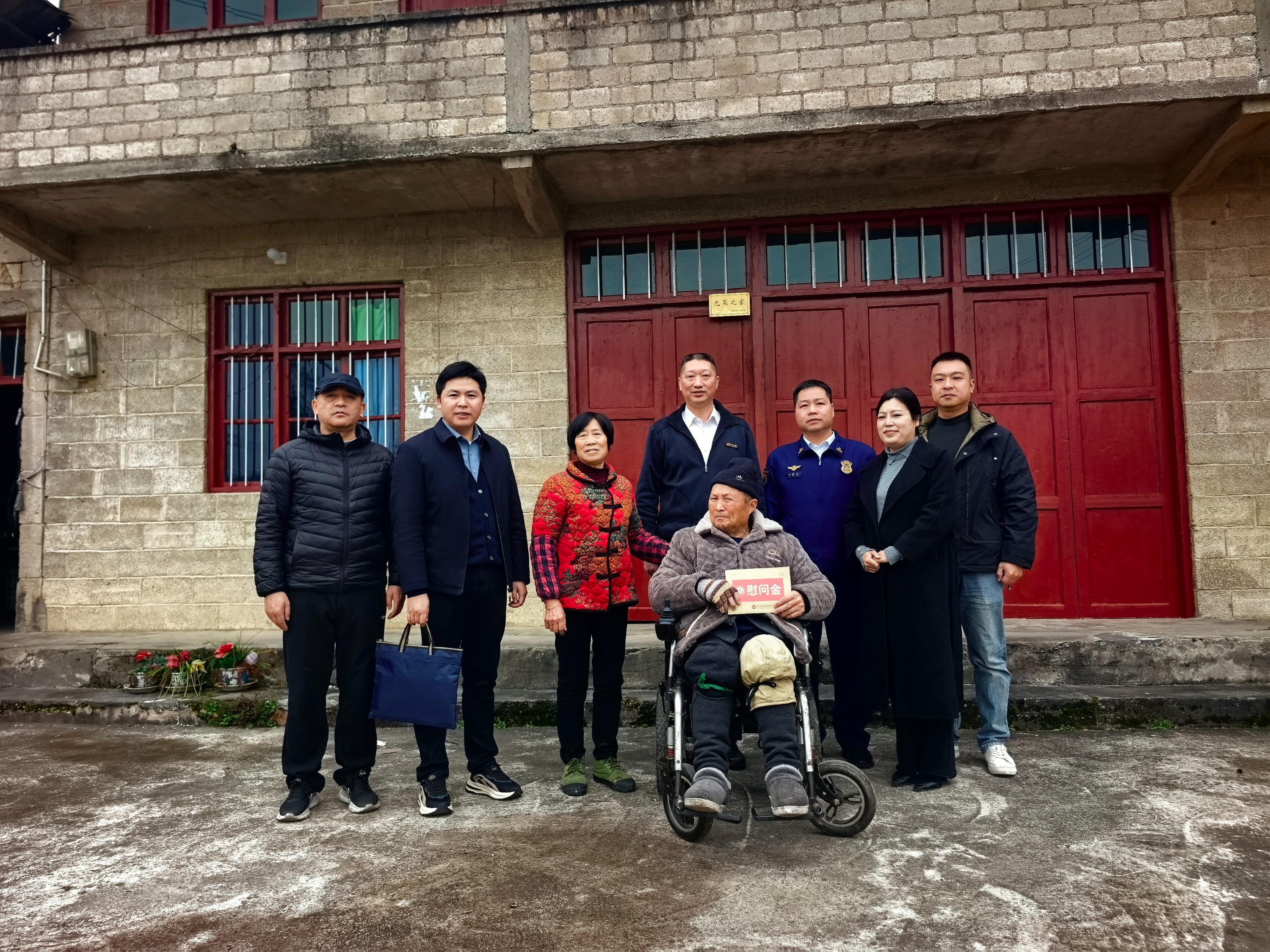 本次慰问的退役军人分别为:伍老兵,70岁,在部队因表现突出立功受奖,退役后积极参与地方建设;2023年突发脑溢血导致重度残疾,长期卧床需轮椅辅助。杨老兵,37岁,2009年至2011年服役于武警某部,未婚;年仅11岁时父母至亲离世,与年幼妹妹相依为命;2025年12月,确诊为恶性黑色素肿瘤并升级,需长期服药。黄老兵,69岁,患尿毒症,现每周透析三次,医疗费用较高;爱人患糖尿病,需长期服药;儿子36岁未婚,无稳定工作。黄老兵,67岁,患冠心病、高血压等病多年;妻子63岁,在家照顾老人;两女外嫁,夫妇二人无固定收入来源。