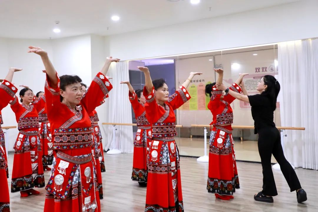 2020年的一个寻常午后,退休居民苏红偶然被文化站传出的乐声所吸引。推开门,眼前热火朝天的舞蹈场景瞬间点燃了她的热情。“当时路过文化站,看到她们的跳舞氛围太有感染力了,我就问能不能加入,没想到一待就到了现在。”从零基础起步,在李玲毫无保留地指导下,苏红如今已能自信地完成高难度舞蹈组合。