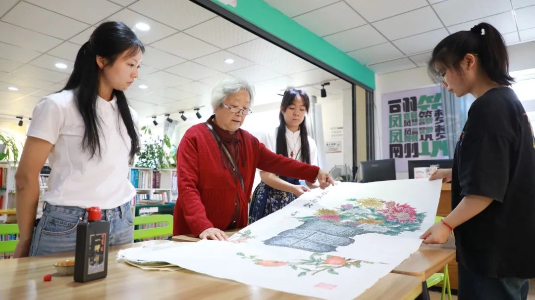 王墨娟(右)老人指导年轻人创作颖拓作品