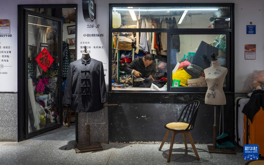 上海市长宁区愚园路的小赵裁缝店店主在熨烫衣服。新华社记者 才扬 摄