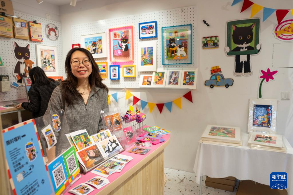 在上海市长宁区愚园路的故事商店,工作人员展示文创产品。愚园路故事商店是由街道支持打造的10平方米特色空间,街道免费提供沿街铺面,将其打造成居民情感交流的“解忧杂货铺”。新华社记者 才扬 摄