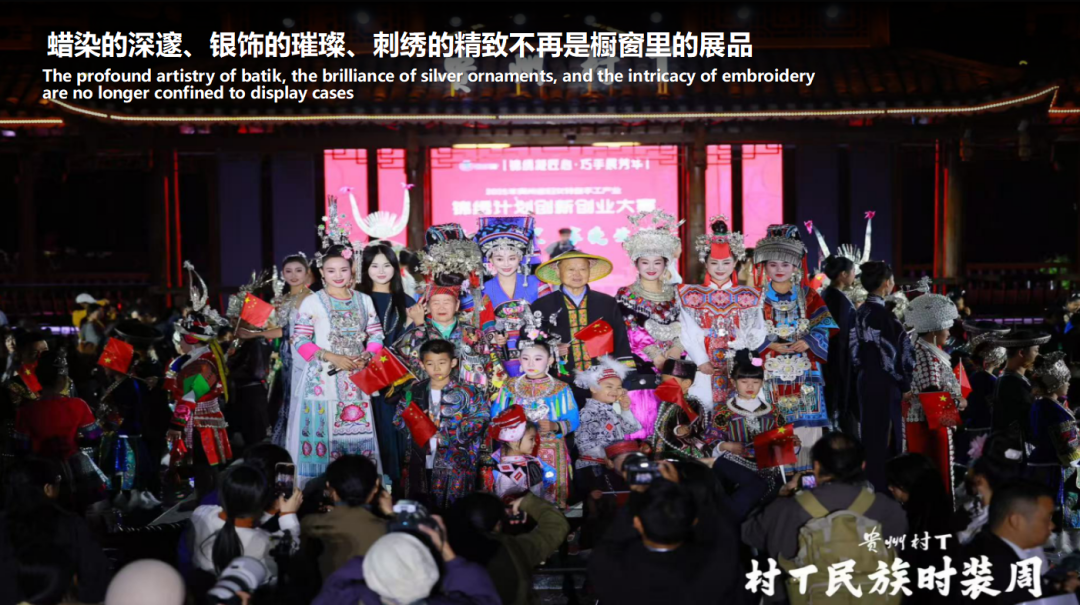诚邀您来走秀,共赏东方非遗霓裳。贵州“村T”时尚回归本真。这里,蜡染的深邃、银饰的璀璨、刺绣的精致不再是橱窗里的展品,而是人人可穿着的流动艺术。乡土即T台,万物皆可秀。无论男女老少,每个人都是模特,每一步都踏出自信。诚邀您穿上这身行头,沉浸式感受非遗服饰的惊艳魅力。