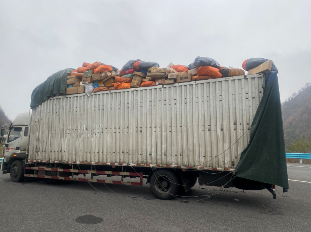 隧道里,一辆超高装载的快递包裹货车被“风机”拦了下来