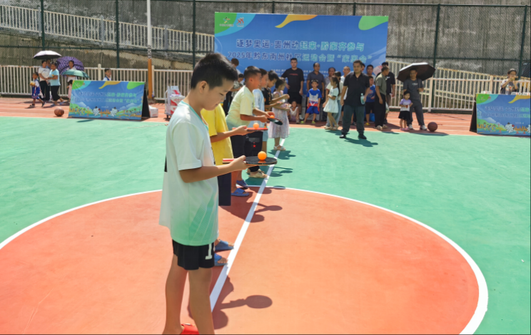 8月27日上午9点,由黔东南州文体广电旅游局、黔东南州妇女联合会主办;从江县文体广电旅游局、从江县妇女联合会承办;贵州省体育彩票管理中心支持;贵州汇泓营销咨询服务有限公司执行的2025年黔东南州社区运动暨“家奥会”迎来收官站——从江。赛事分两场个人赛及家庭赛,个人赛:篮球投篮、乒乓球运送;家庭赛:家庭跳绳、足球颠球接力等,吸引银新社区近200人参与。