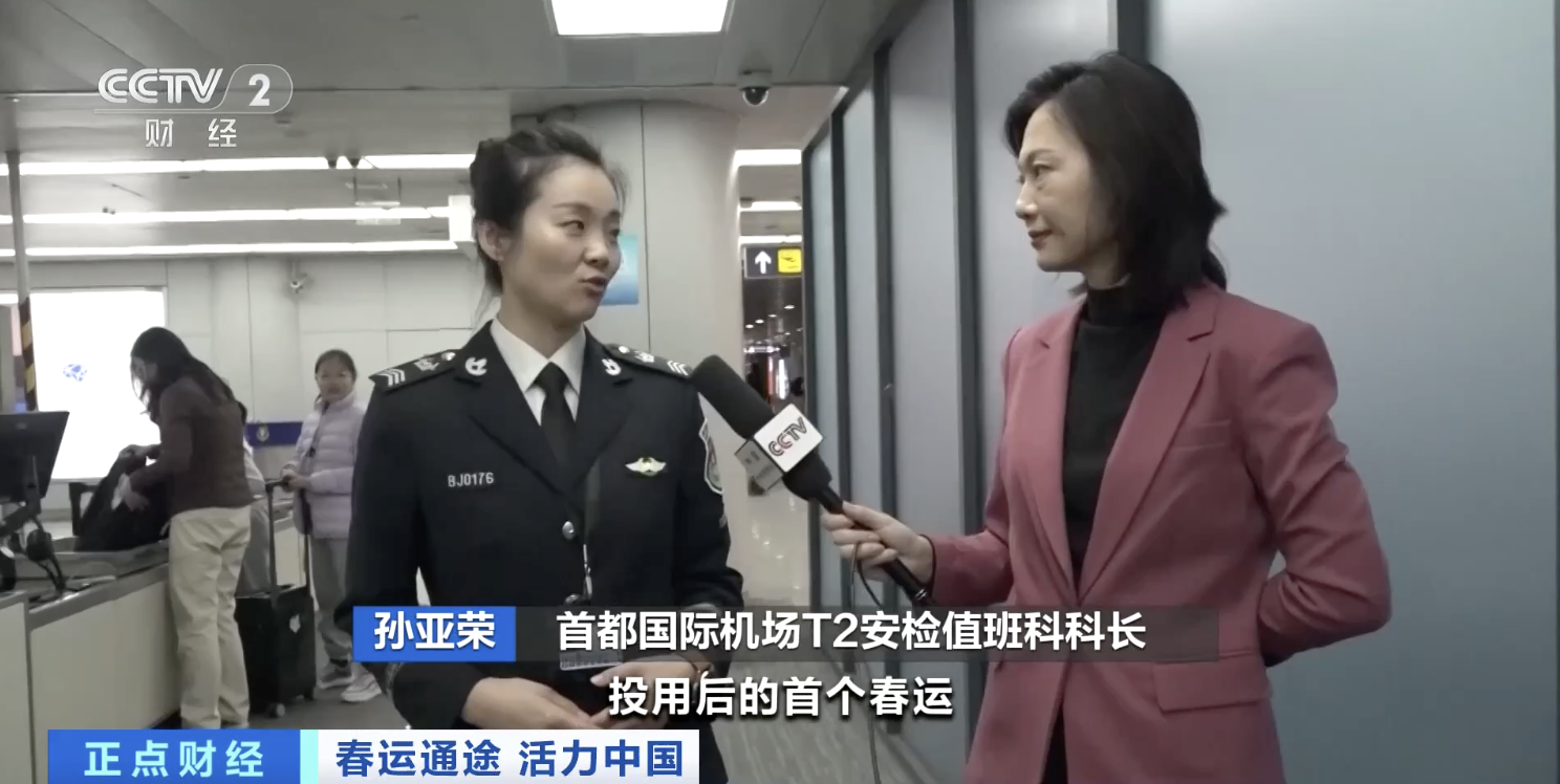 首都国际机场T2安检值班科科长 孙亚荣:今年是智能“易安检”通道投用后的首个春运,通道里各环节查验精准度高,旅客过检效率大幅度提升,在春运的大客流下也缓解了安检员们的工作压力。
