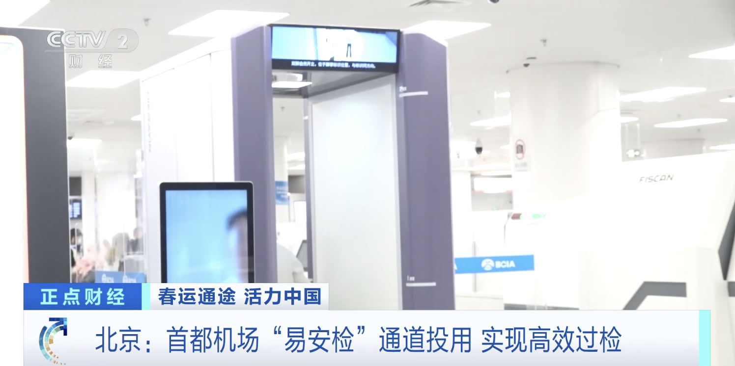总台央视记者 陈晰:在首都机场的智能“易安检”专用通道,和传统机场安检通道不同,这里有毫米波人体安检门、CT机安检设备,还安装了自动回筐系统,旅客全程不用反复掏取随身物品,精简了安检流程。