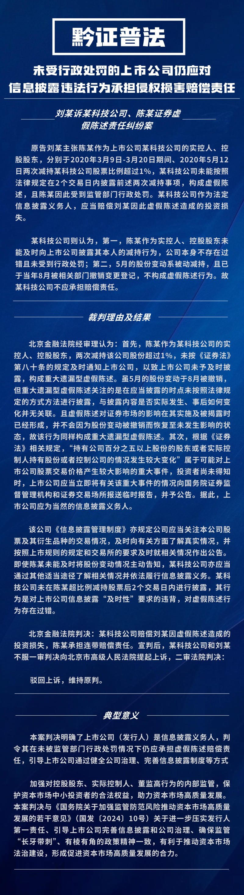 黔证普法丨未受行政处罚的上市公司仍应对信息披 露违法行为承担侵权损害赔偿责任