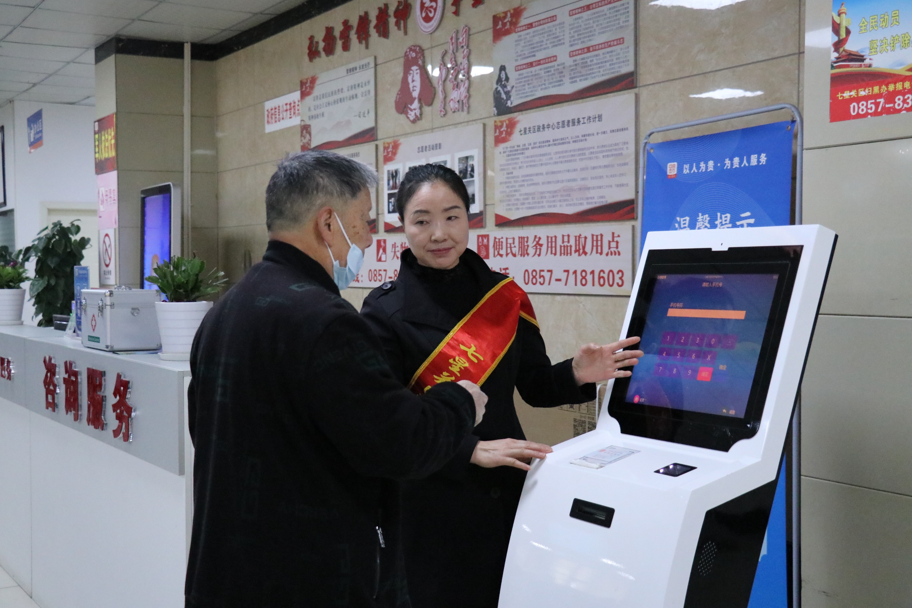 在七星关区政务服务中心办事大厅,前来办理业务的群众络绎不绝,工作人员耐心地为群众讲解办事流程,引导群众有序办理业务。