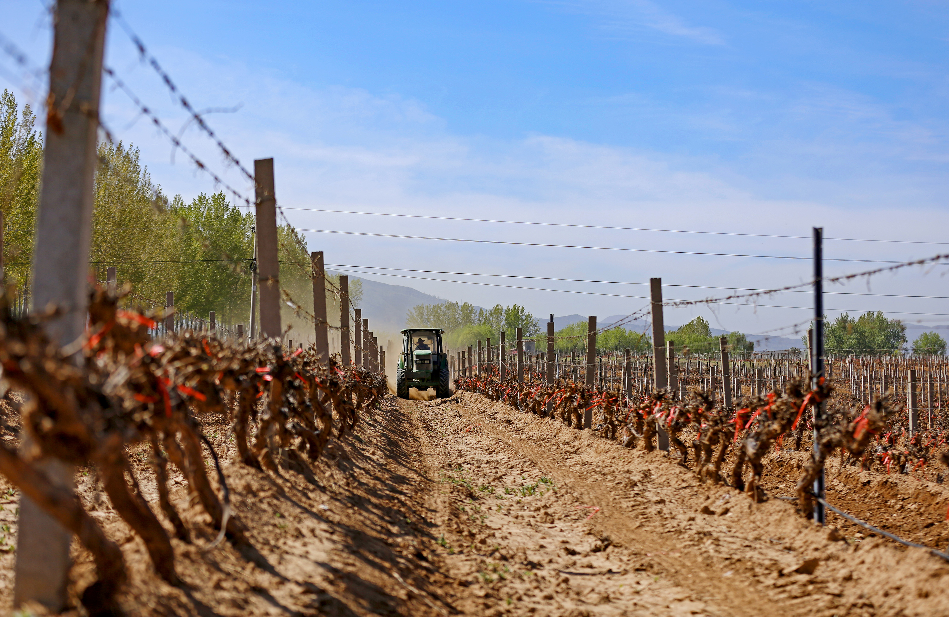 仲春时节,山西省临汾市襄汾县尧京酒庄3500余亩葡萄迎来了管护关键期。酒庄工作人员抢抓农时,驾驶拖拉机对葡萄园开展除草、松土等管护作业,为高品质葡萄丰收打好基础。作者:李现俊