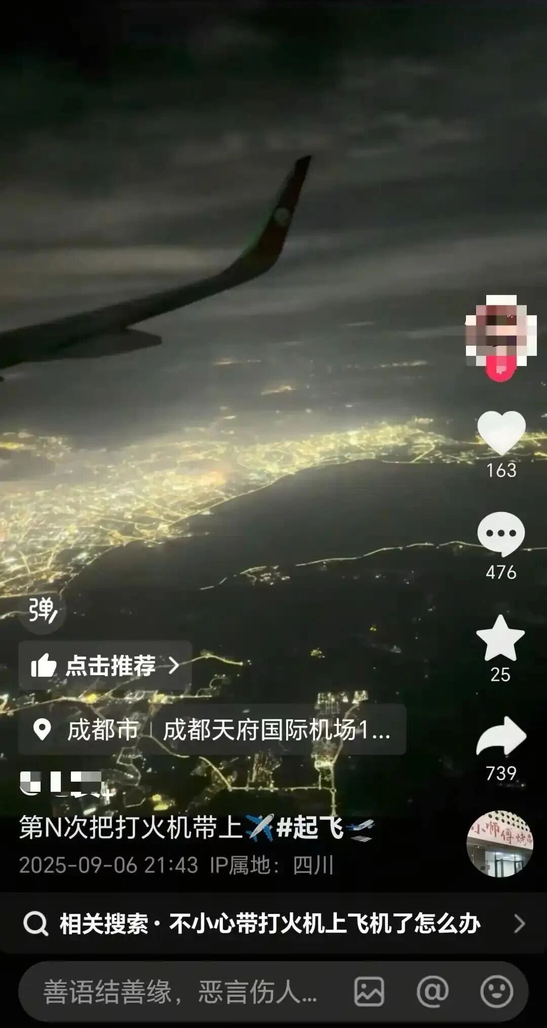 女子发视频炫耀:“第N次把打火机带上飞机!”成都天府机场回应