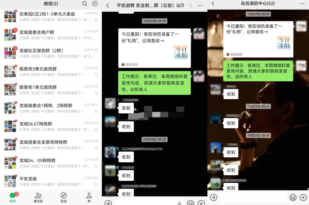 贵阳市消防还将结合“平安进群·安全到家”行动,依托新媒体平台在网格员微信群定期推送案例警示和科普图文信息,联动网格员发动群众转发学习,增强警示效果。