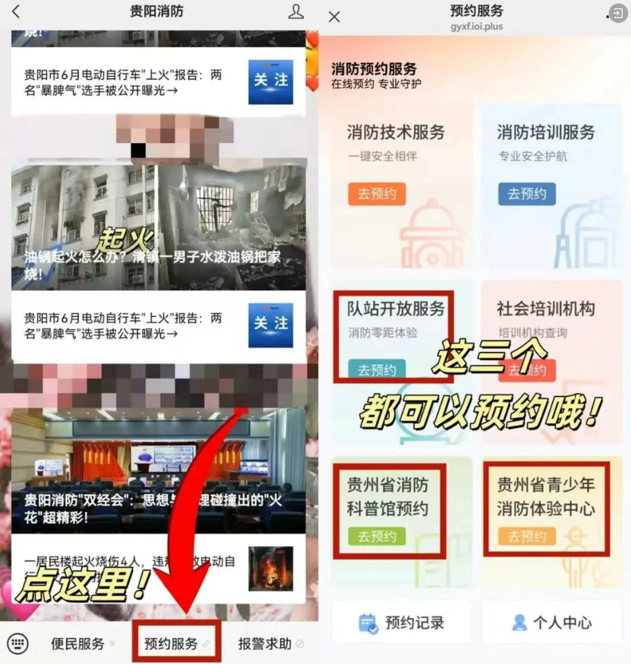 开放消防科普馆、消防站,鼓励大家来参观。大家能通过@贵阳消防微信公众号便民服务预约平台“培训预约”功能模块,积极预约,多去看看、体验体验,就能懂得更多消防知识。