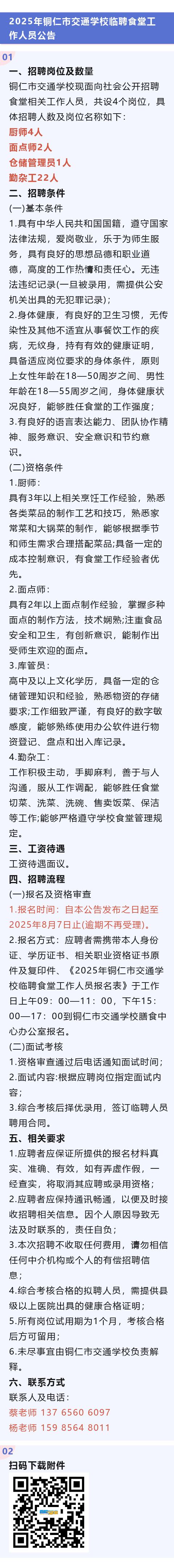 学校招聘厨师、面点师、仓储管理员、勤杂工!报名即将截止!