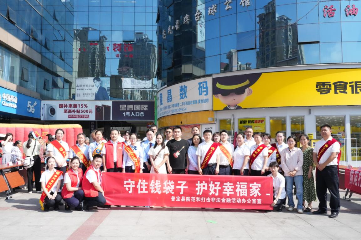 普定金融监管支局联合县金融办组织县防范和打击非法金融活动联席会成员单位、县银行保险等30余家机构在普定县兴博广场开展以“守住钱袋子·护好幸福家”为主题的防范非法金融宣传活动,现场发放宣传折页1200余份,涵盖非法金融的常见案例分析,防范要点以及相关法律法规解读,本次活动得到普定融媒微信公众号、普定新闻等县域主流媒体报道,相关视频受到安顺广播电视台转发。