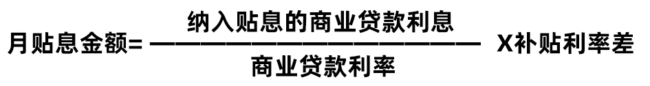 (一)纳入贴息的商业贷款利息=商业贷款实还利息×(申请时核定的贴息额度/申请时商业贷款余额)