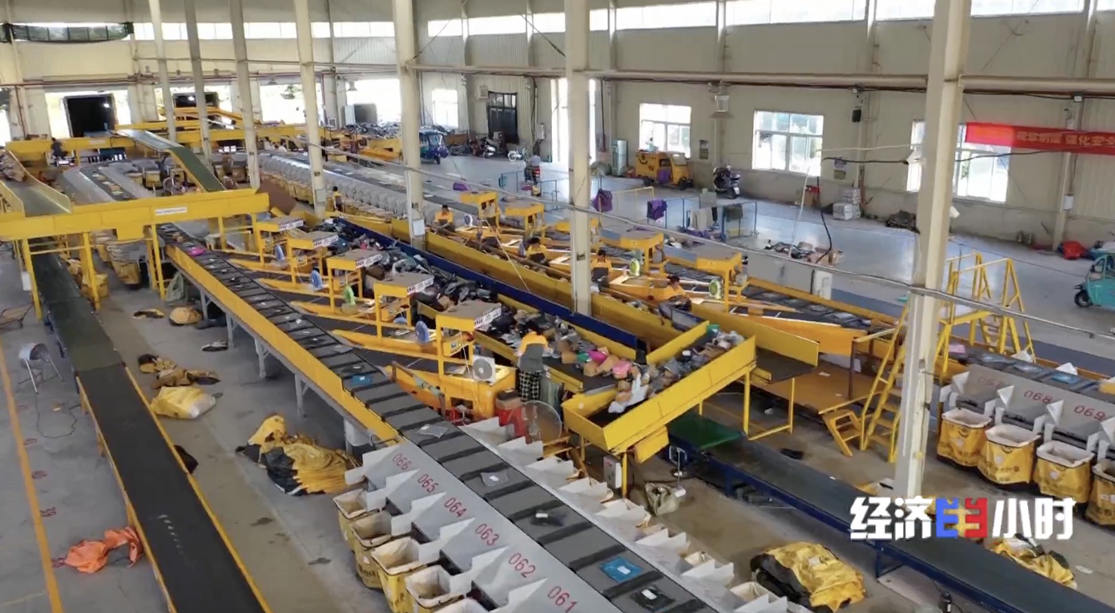 但是有了被称作“小黄人”的自动引导车,理货的员工工作轻松了不少。服装上的芯片会和“小黄人”绑定,它们就可以在平台上井然有序地转送和分拣衣服。这个“小黄人”退货分拣系统运行已有三年,降本增效非常明显。