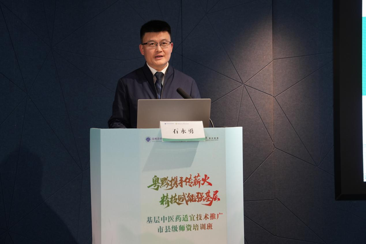 “本次培训班是落实国家‘十四五’中医药发展规划、基层中医药服务能力提升工程行动计划与粤黔医疗卫生协作的关键举措,面向市县级骨干师资,聚焦安全有效、简便易学、成本低廉的中医适宜技术开展标准化、规范化、可复制集中实训,旨在建强一支‘留得住、用得上、教得好’的基层带教队伍。”省级中医适宜技术推广中心主任,广东省中医院贵州医院党委副书记、院长石永勇说,本次师资培训是中医药适宜技术推广的“种子工程”,通过建强县—乡—村三级传导体系、压实落地责任、全流程跟踪带教与质量控制,确保技术沉得下、用得好、能持续、真正惠及民生。