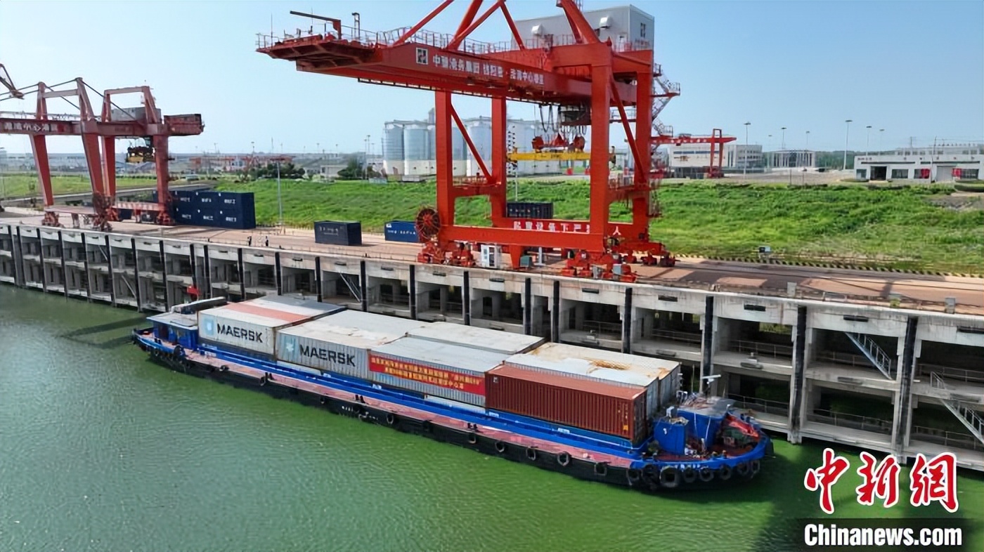6月15日,一艘满载96标箱铁矿砂的集装箱船抵达河南信阳港·淮滨中心港,这标志着该省内河航运装载量最大的集装箱船完成首航,单船载箱量比以往增加一倍。