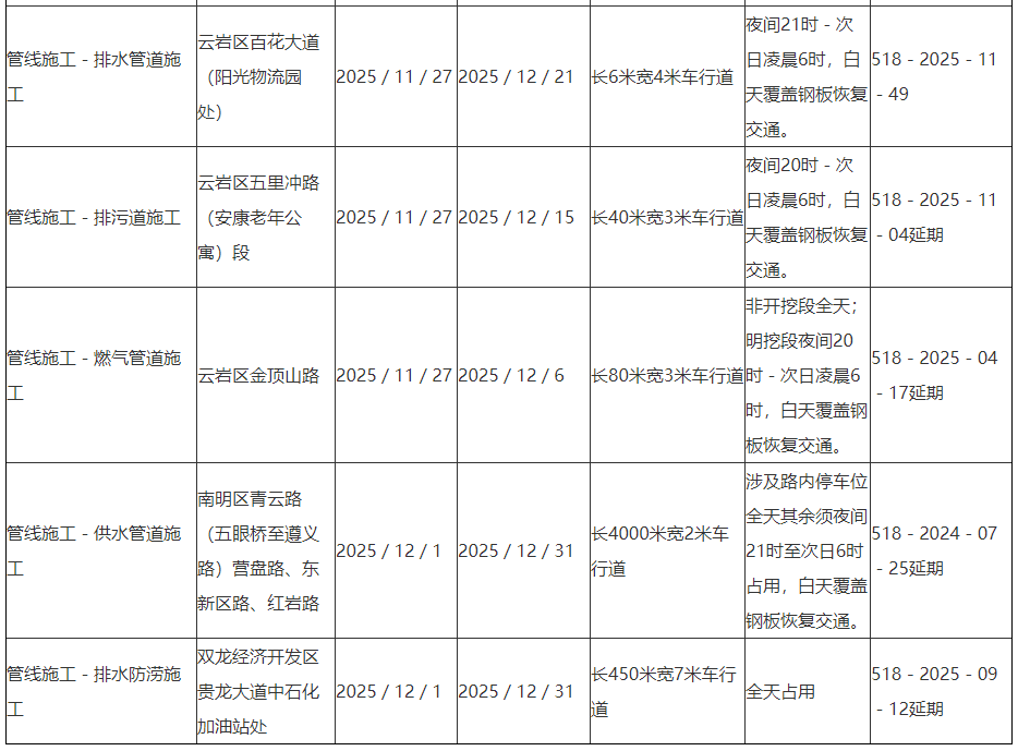 贵阳市云岩区金顶山路等近期临时占用道路施工提示