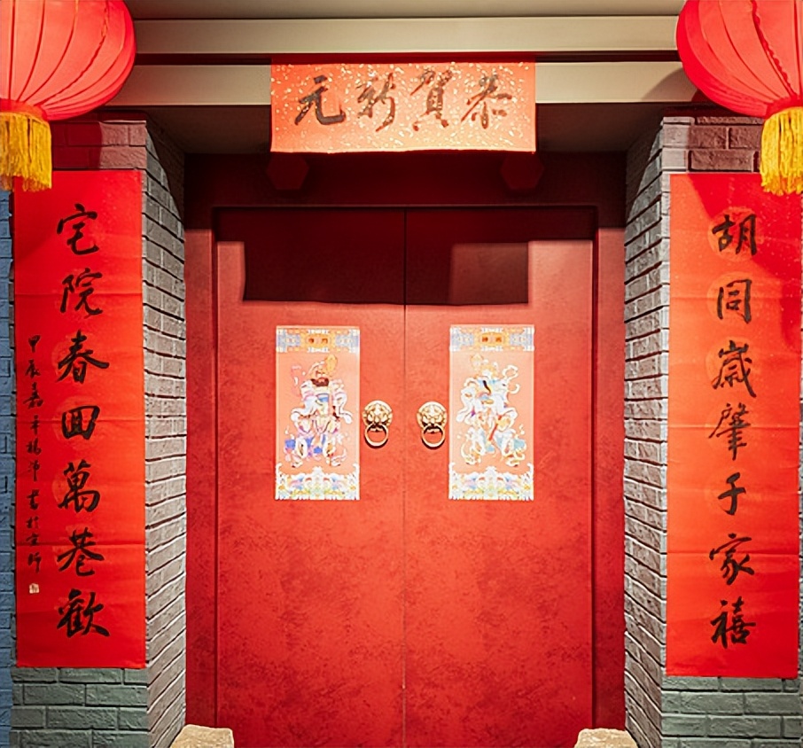 春联的传统贴法是面对大门时,上联贴在右边,下联贴在左边。这是因为传统的春联书写顺序是从右往左,横批文字顺序也是从右至左的。