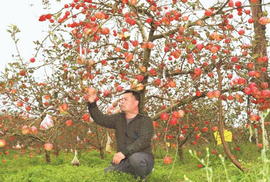 11月16日,黔南州长顺县广顺镇苹果种植园内果香四溢,高钙苹果挂满枝头,像一串串“红玛瑙”点缀在翠绿枝叶间。果农、游客们三五成群,穿梭在林间,体验采摘乐趣。