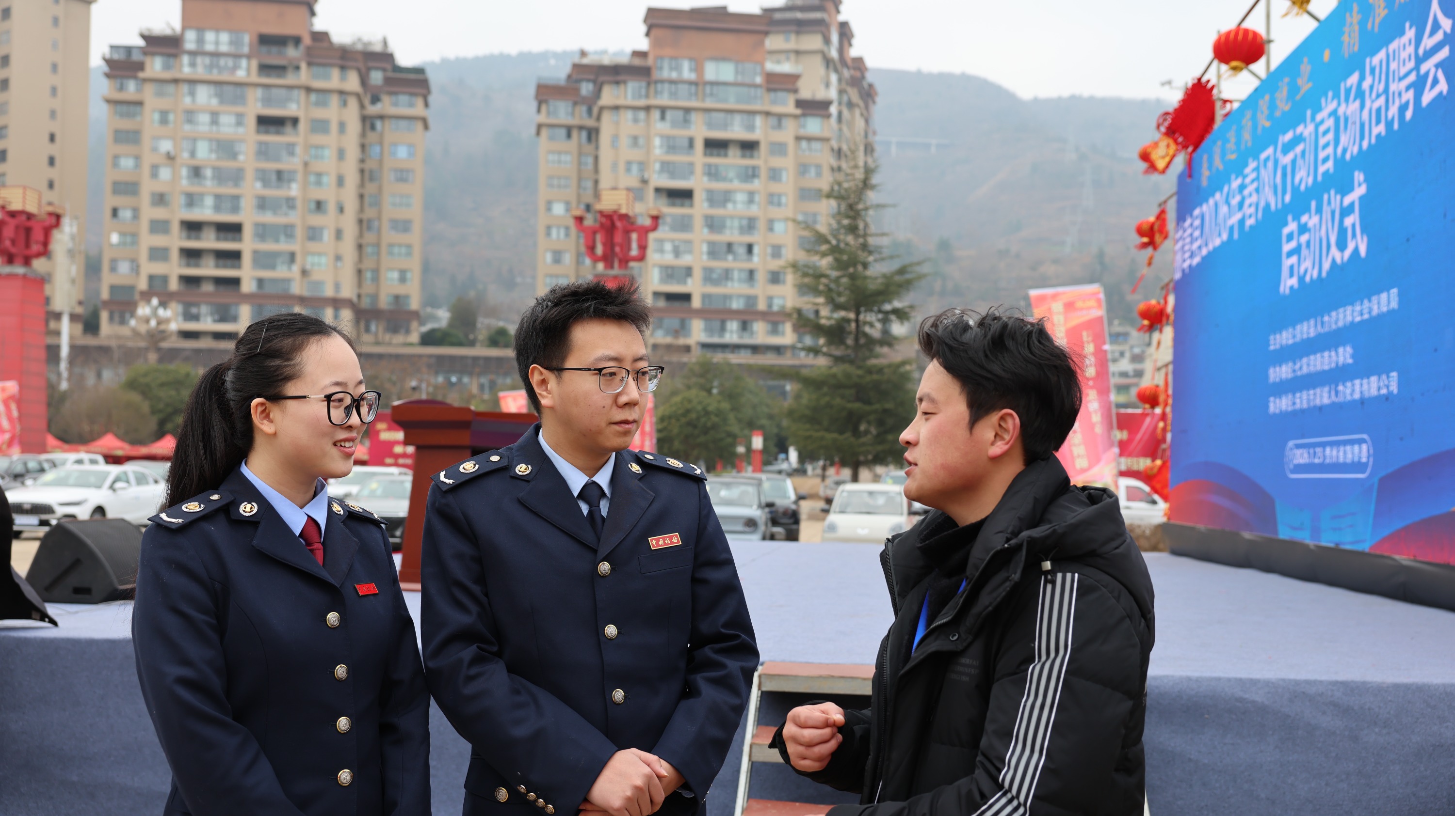 图为税务干部在入驻商户招聘时,向活动企划方了解活动详情,沟通活动辅导细节。(陈焰宏 摄)