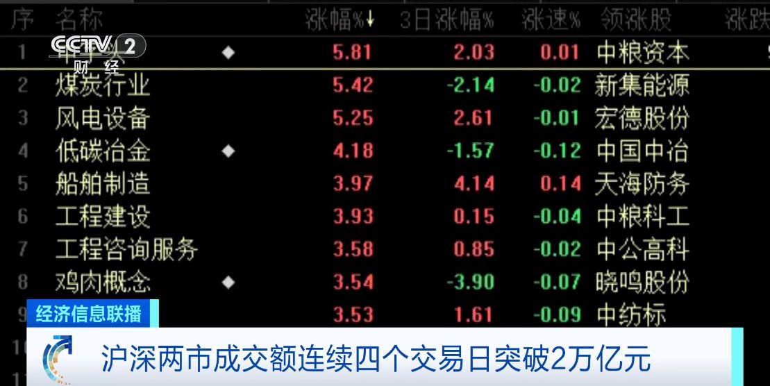 沪深两市成交额连续四个交易日突破2万亿元