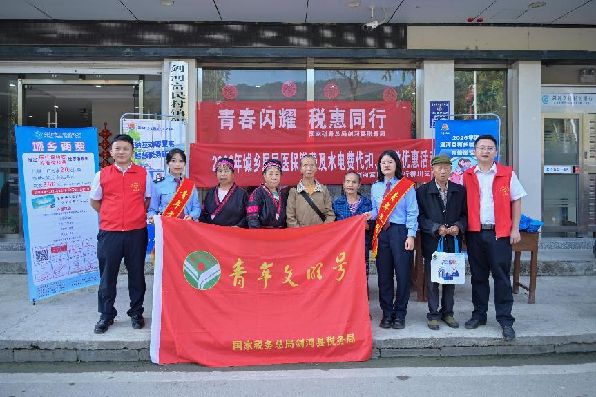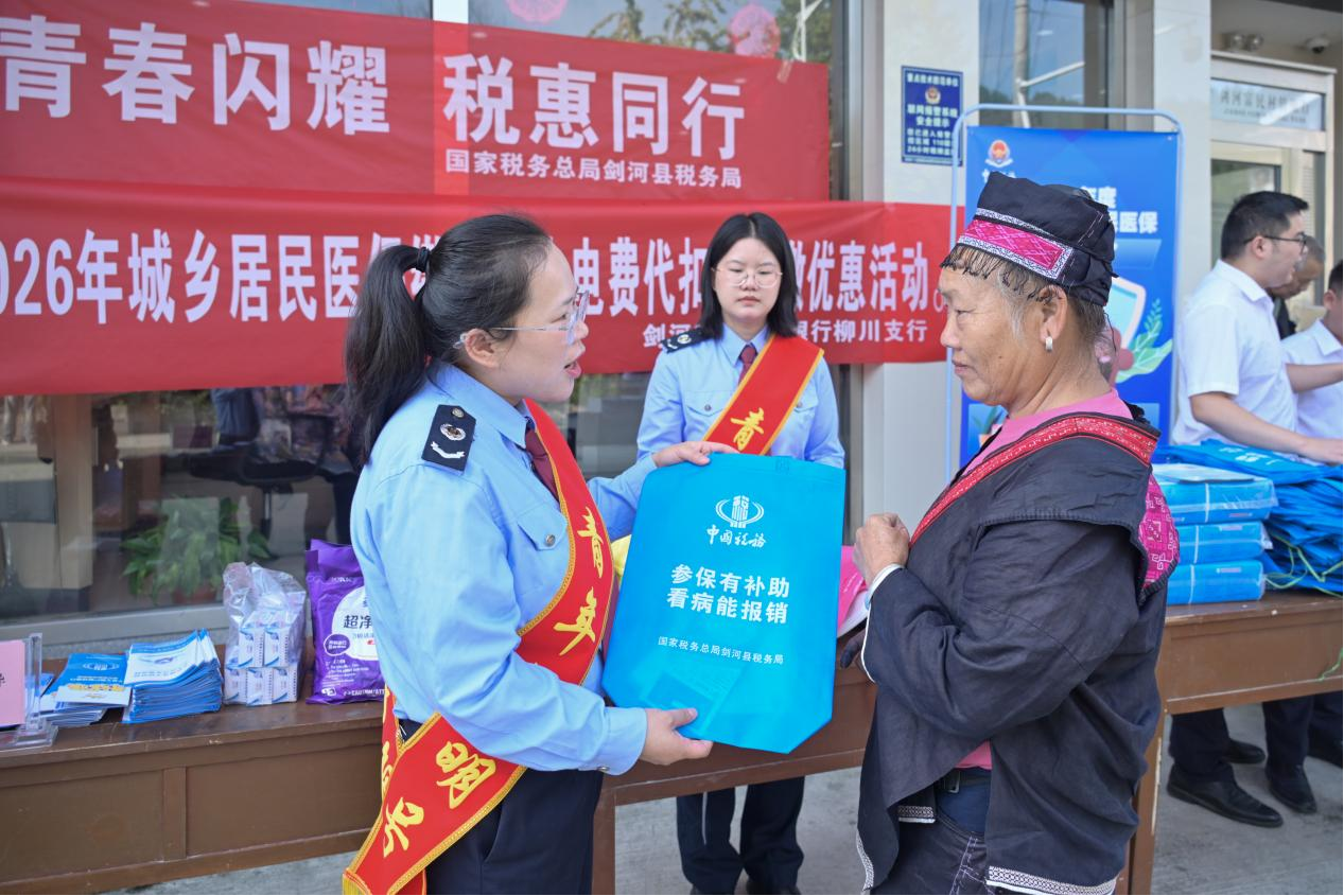 剑河县税务局积极拓展“青年文明号”外延,组织青年志愿者深入基层一线。借助柳川镇“赶集日”人流密集的契机,青年志愿者们联合剑河县富民村镇银行,共同搭建政策宣传台,宣传资料涵盖了增值税普通发票代开、小微企业税收优惠、2026年城乡两险征缴等与百姓生活和商户经营息息相关的内容,以通俗易懂的语言和生动形象的案例,让税收政策一目了然。志愿者们用通俗易懂的语言耐心解答群众疑问,详细说明参保流程和惠民之处,有效提升了群众对政策的知晓度和参保积极性,以实际行动服务乡村振兴战略,将便民春风吹进田间地头。