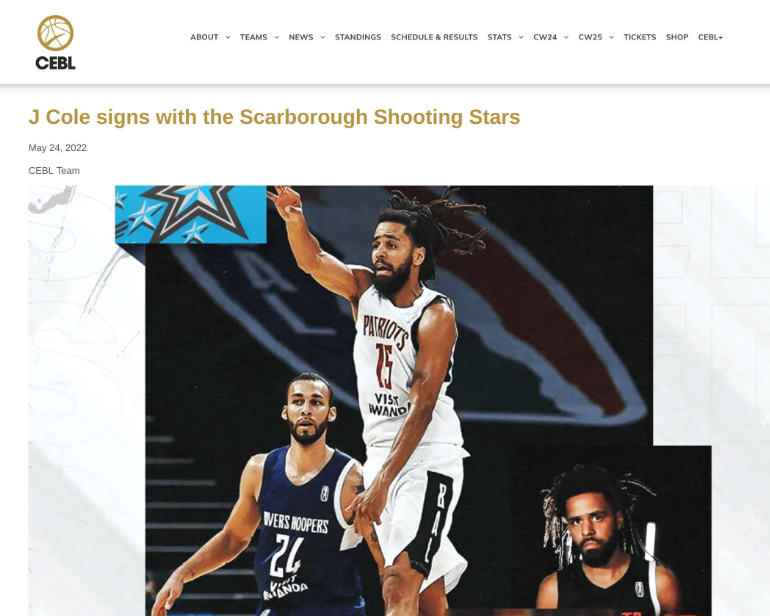 △ 2022年J.Cole曾加入一家加拿大俱乐部,参加加拿大男子篮球职业联赛。