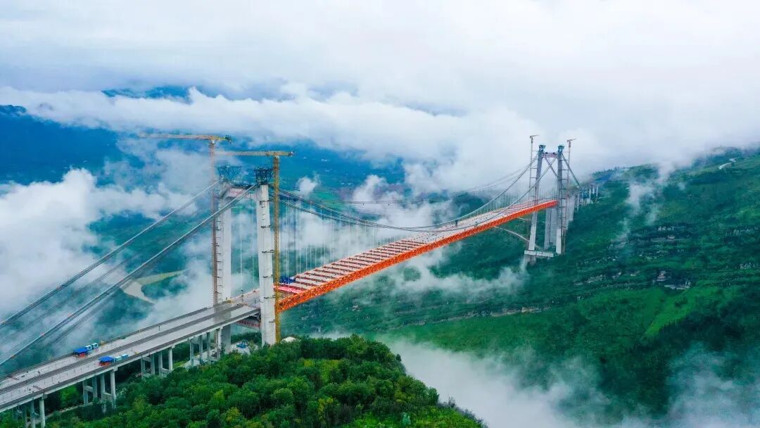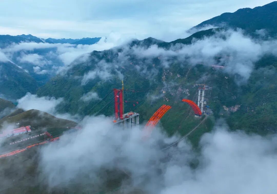 采用跨径810米的无支架缆索吊装系统,将主拱圈分为88个节段空中作业,规避深谷支架难题。施工中对温度、线形、索力进行协同控制,确保成桥内力与线形精准符合设计。