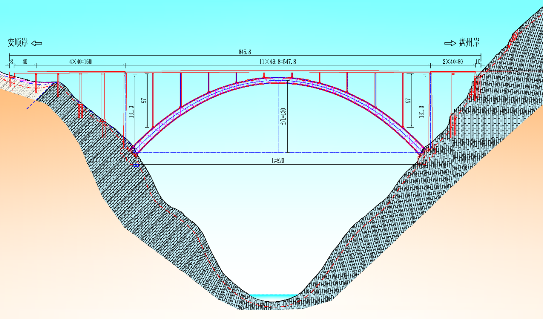 拱座设计:针对陡峭山体,尤其盘州岸近90度石壁,创新采用隧道式桩基础,减少开挖,保护脆弱地质。