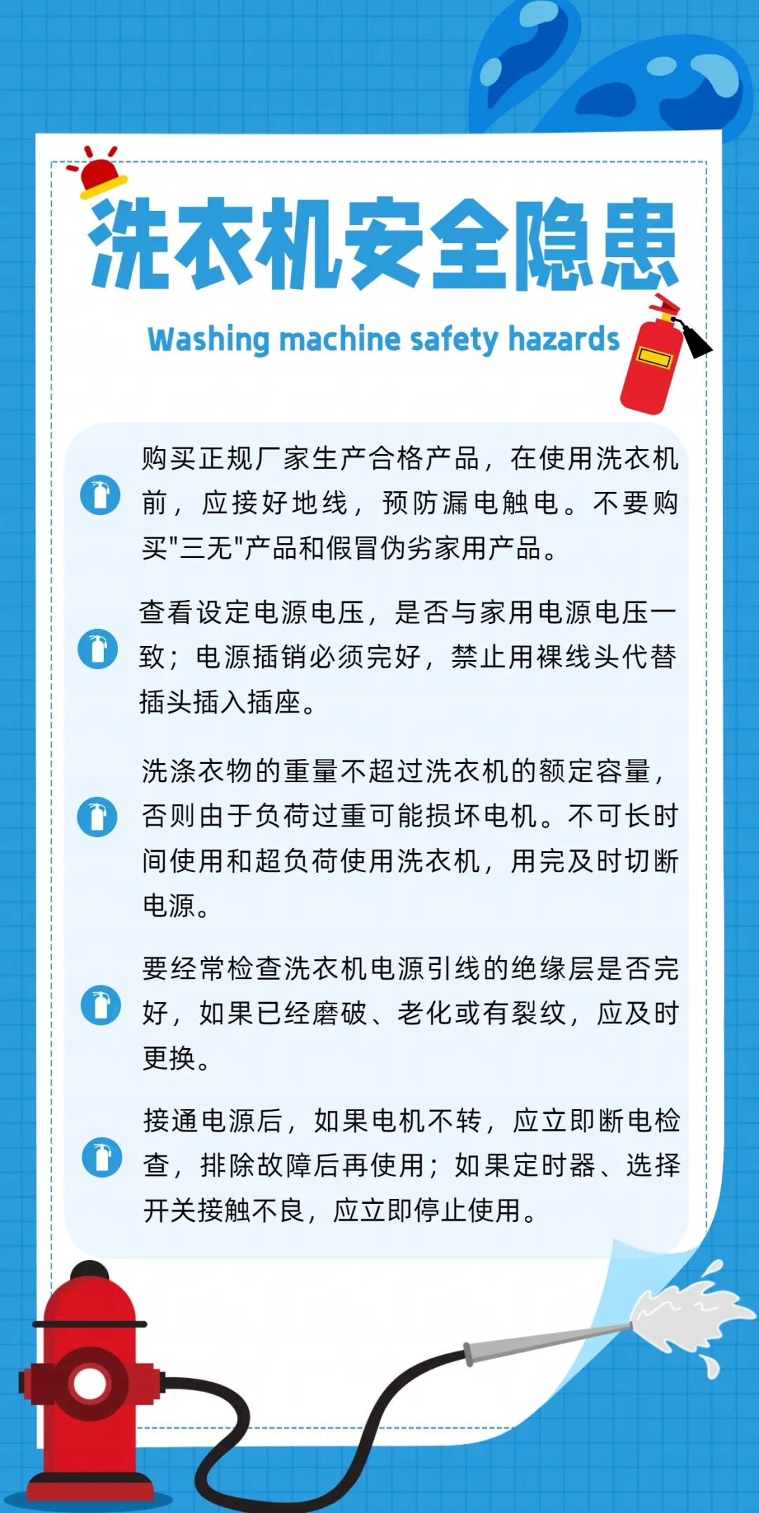 贵阳市消防救援支队提醒,洗衣机作为常用家电,暗藏多重火灾隐患:密封圈老化漏水或清洁时水分渗入,可能导致内部电路短路;长期使用后导线绝缘层易因高温、震动老化破损,引发短路;电机绕组绝缘层损坏或启动电容故障,也可能造成电路异常短路。公众需注意家电日常检查与维护,防范火灾风险。