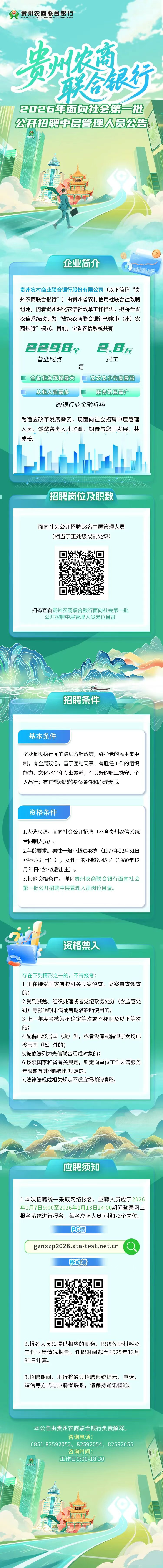 贵州金融丨贵州农商联合银行2026年面向社会第一批公开招聘中层管理人员公告
