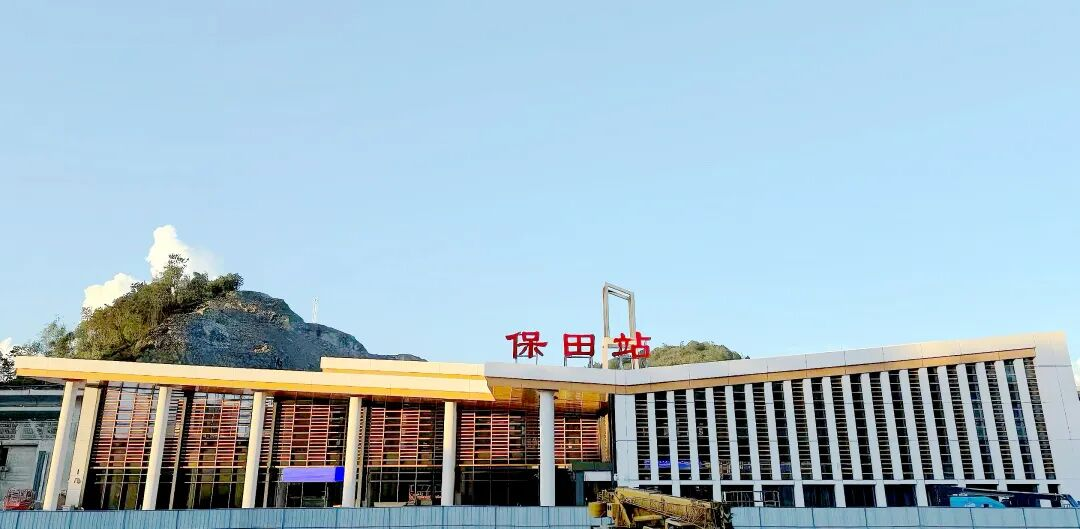 保田站是盘兴城际铁路唯一中间站,站房建筑面积近3000平方米,站场规模为2台4线(含正线2条)。站房设计灵感源自山地的自然意象,以“曲折山路、山间驿站”立意进行设计,整体屋面采用层叠转折的形态,犹如一条蜿蜒崎岖的山路,顺势展开,与周边环境融为一体。同时,车站站台采用清水混凝土雨棚的标准化施工工艺,确保了雨棚线条流畅、色泽统一,成为站房外观的重要亮点。