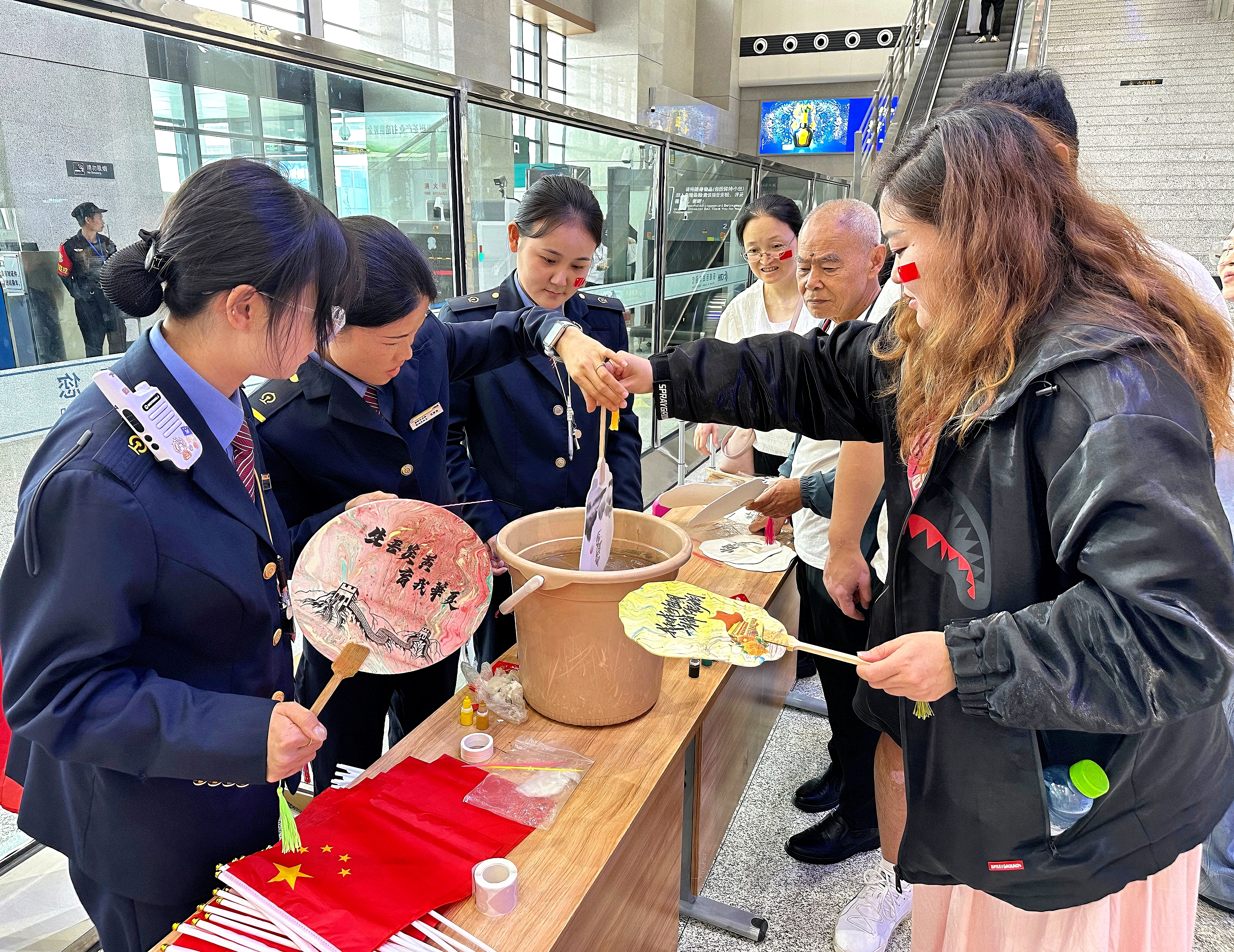 今年“双节”,为让旅客在奔波途中感受节日温暖,安顺西高铁站推出了“高铁映双节,团扇打卡绘家国”主题活动。