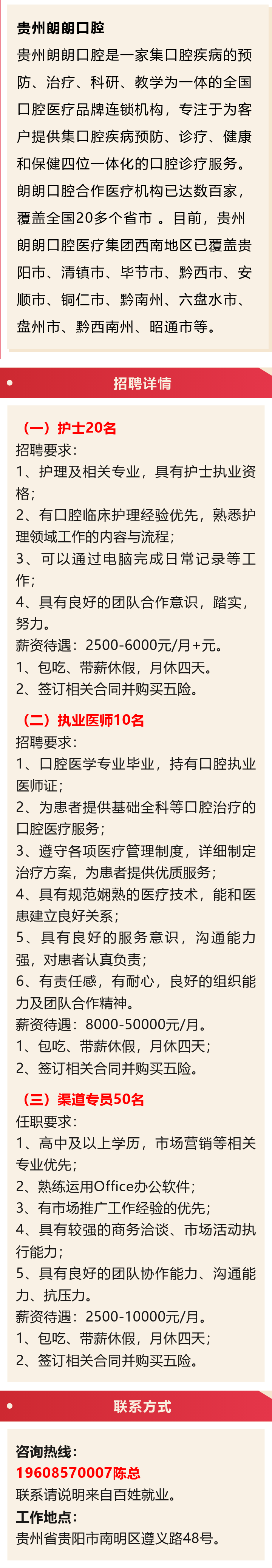 【知名企业】贵州朗朗口腔招聘80人!月薪可达50000元!