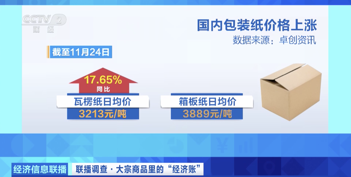 卓创资讯瓦楞及箱板纸资深分析师 徐玲:短期来看,瓦楞及箱板纸(价格)还是呈现上涨的趋势,但涨势有所放缓。一方面目前纸厂的库存处于低位,供应端暂时没有很大的压力;另一方面,随着春节、元旦的订单陆续释放,需求存在增加的预期。整个产业链的利润向上游偏移,涨价向下游传导难度加大。