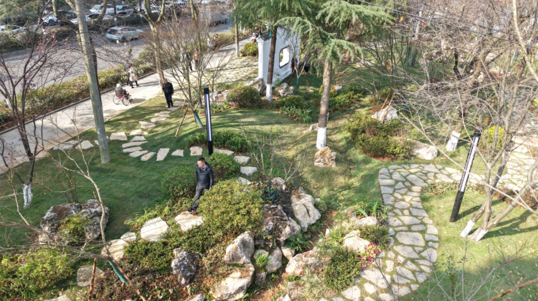 这座公园占地约2900㎡,地处繁华地段,周边小区、学校、农贸市场环绕,人流量大。建设单位以“观山听泉揽日月,卧石枕云悟春秋”为主题,把传统园林建设技法和贵州地域特色相结合,重塑城市公共绿地的城市生态微空间。