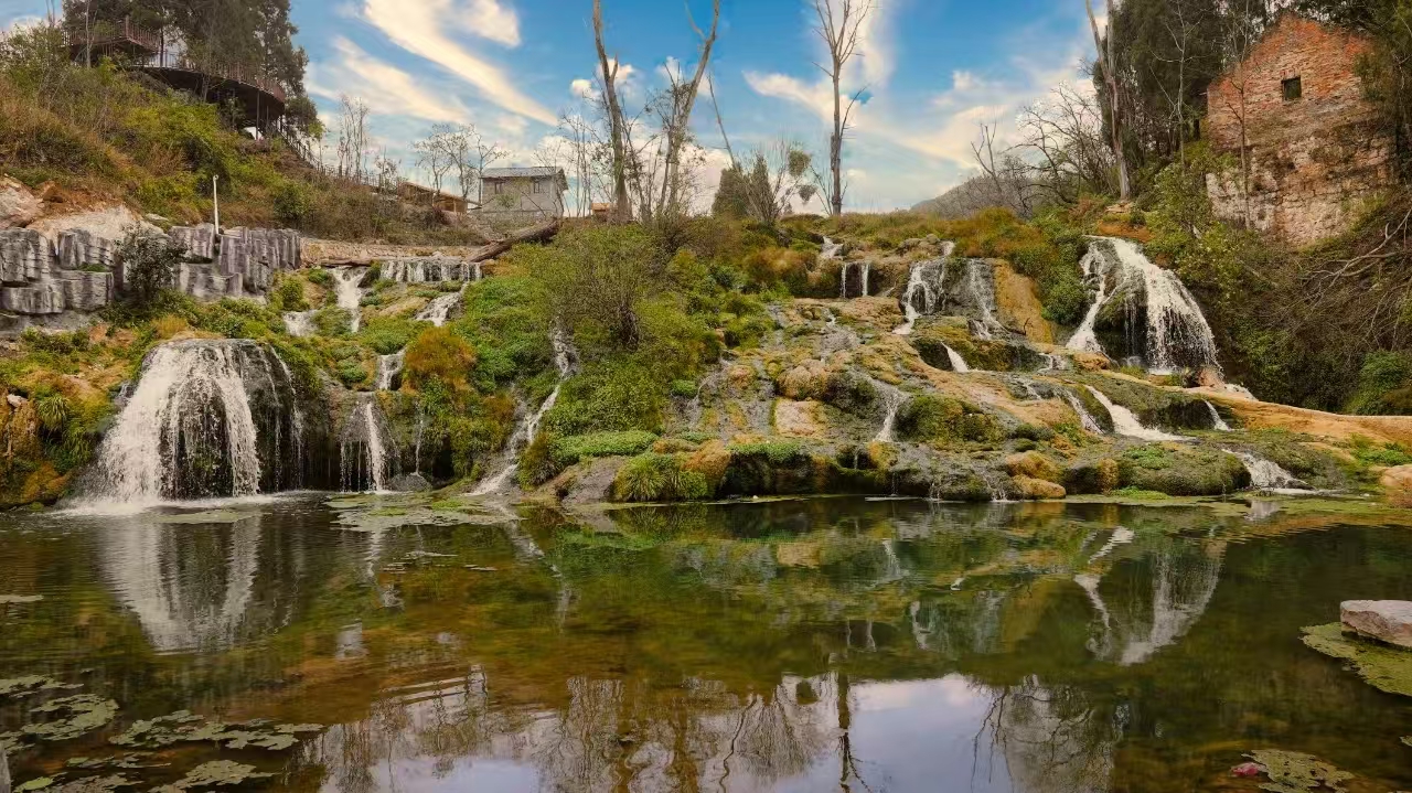 踏入落叶新村,就像闯进了一幅自然绘就的山水画卷。沿着坪寨河漫步,流水潺潺,如灵动的音符奏响自然乐章,鸭群在水面悠然游弋,泛起层层温柔的涟漪;顺着观瀑步道而下,落拉河瀑布气势恢宏,水花飞溅,似串串珍珠洒落人间,在阳光的轻抚下折射出梦幻的光芒。远处山峦连绵,与蓝天白云相映成趣,勾勒出优美的天际线;近处田园广袤,四季变换着色彩,春有繁花似锦,夏有稻浪翻涌,秋有金穗摇曳,冬有静谧安然,每一幕都美得让人挪不开眼。