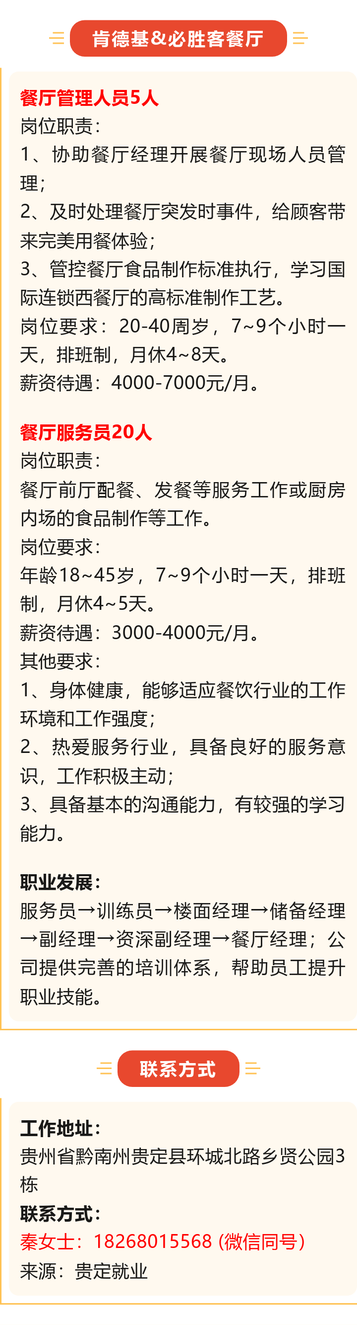 【知名企业】肯德基&必胜客餐厅招聘25人!月薪可达7000元!