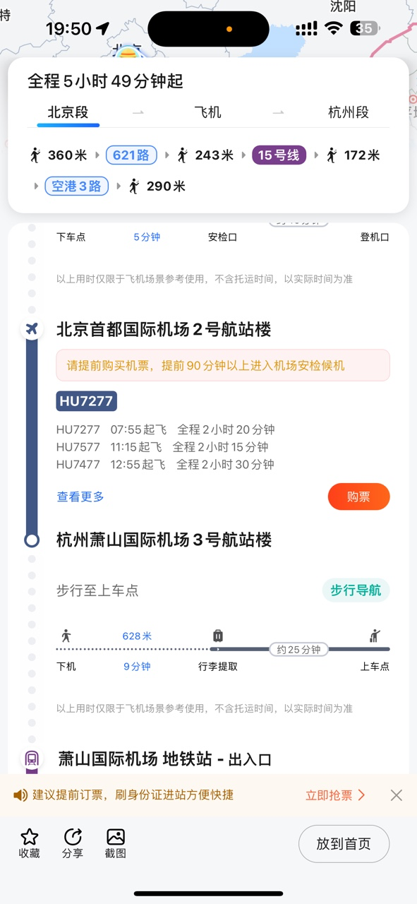 针对选择公共出行的用户,高德提供的“门到门”跨城公交服务包含公交、地铁、火车、飞机、步行、打车等多种出行方式,不仅可以根据时长、费用、换乘情况、步行距离等多重要素,进行路线的智能化推荐、一键购票,甚至还能将用户站内换乘距离和时长、建议出发时间等细节均考虑在内,进行“一键式”规划,真正做到了城际远距离出行的省时、省心、省力。